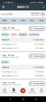 Men Danløn appen er meget mere end blot et tidsregistreringsværktøj. Få øjeblikkelig adgang til alle dine lønsedler, med mulighed for at se fem år tilbage i tiden. Dette giver dig et fuldt og hurtigt overblik over din løn, pension, resterende feriedage og skatteforhold – alt sammen lige ved hånden. Glem besværet med at opsamle kvitteringer eller huske detaljer fra arbejdsdagen; Danløn gør det problemfrit at registrere kørsel, fravær og udlæg, mens du er på farten, og dine indtastninger sendes direkte til Danløns system.