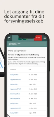 E|Forsyning strømliner din interaktion med dit forsyningsværk og tilbyder en række praktiske funktioner. Har du brug for at analysere dine data? Du kan nemt trække op til de sidste fem års forbrug, aflæsninger og temperaturer ud til et regneark. Ved en flytning kan du hurtigt og ubesværet meddele de nødvendige oplysninger, herunder adresser, ny ejer og aflæsninger, direkte via appen. Desuden får du adgang til at læse, gemme og udskrive vigtige dokumenter fra dit forsyningsværk samt en beregnet årsopgørelse, der estimerer det endelige resultat for året baseret på dit aktuelle forbrug.