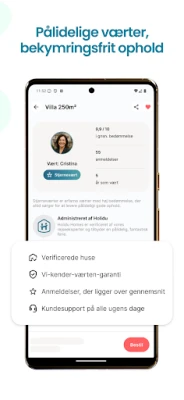 Holidu forstår vigtigheden af tryghed og gennemsigtighed, når du planlægger din rejse. Derfor garanterer Holidu en oplevelse uden ubehagelige overraskelser. Alle priser er fuldt gennemsigtige, uden skjulte gebyrer, og du har mulighed for at se afbestillingsbetingelser samt ægte gæsteanmeldelser, der giver dig et autentisk indblik. Med 23 kontorer strategisk placeret i Europas mest eftertragtede ferieområder, sikrer Holidus lokale eksperter, at hver eneste bolig lever op til høje standarder, formidlet af pålidelige værter.