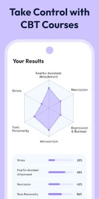 Start din rejse med dybdegående selvvurderinger, der afdækker alt fra personlighedstyper og tilknytningsmønstre til potentielle udfordringer som ADHD-tendenser og stemningsforstyrrelser. Hver test giver dig et klarere billede af dine emotionelle landskaber. Derefter kan du dykke ned i skræddersyede forløb baseret på kognitiv adfærdsterapi (CBT). Disse interaktive kurser tilpasses dine unikke behov og guider dig gennem emner som stresshåndtering, heling efter barndomstraumer, bryde prokrastinationsmønstre, eller at styrke dine kærlighedsrelationer gennem forståelse af kærlighedssprog og konfliktløsning.