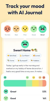 Din daglige udvikling understøttes af Serenes intelligente dagbog og humørtracker. Her kan du reflektere frit, modtage tankevækkende spørgsmål og genkende følelsesmæssige tendenser over tid. Hver dag byder også på en personlig indsigt, der spejler din rejse og inspirerer til videre vækst. Med Serene kan du udforske et bredt spektrum af emner – fra udbrændthed og kropsbillede til toksiske relationer og narcissisme. Få desuden et positivt boost med daglige affirmationer, og vær tryg ved, at din mentale rejse er beskyttet med den største respekt for privatlivet.