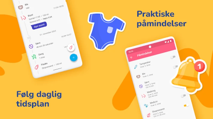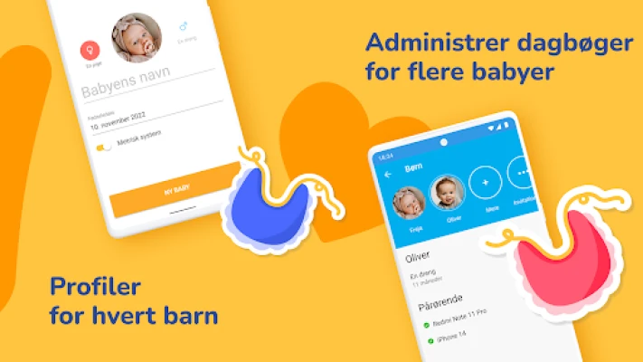 Foruden de omfattende logfunktioner er der tænkt på din komfort og mentale overskud. Brug de smarte amme- og søvn-timere, der nemt kan pauses og genoptages, og se dem direkte i din notifikationslinje for konstant adgang. Med påmindelser, der kan tilpasses individuelle behov, glemmer du aldrig en vigtig aktivitet, selv hvis du falder i søvn på sofaen. Følg babyens højde og vægt næsten dagligt, og gem alle data sikkert i en overskuelig baby log – uvurderlig information til lægebesøg og for at følge barnets vækstkurve. Og har du flere små mirakler, som tvillinger, understøtter vores baby tracker også logføring for flere babyer. Denne løsning fjerner den daglige logistikbyrde, så du kan fokusere på at nyde forældreskabet. Send os gerne dine forslag – vi stræber altid efter at forbedre denne app for dig!