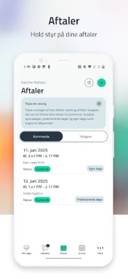 Appen forenkler din sundhedsadministration markant. Du kan nemt bestille nye tider eller aflyse eksisterende aftaler, herunder videokonsultationer, og bevare et komplet overblik over alle dine kommende og tidligere aftaler på tværs af sundhedsvæsenet. Hold styr på din medicin; se både nuværende og tidligere recepter, og anmod bekvemt om fornyelse. Få indblik i dine udvalgte prøvesvar, som for eksempel blodprøver, og overvåg dine og dine børns vaccinationsstatus direkte fra din mobile enhed. Desuden giver Min Læge dig adgang til dine henvisninger, hvilket gør det lettere at finde og kontakte den rette specialist, hvis du skal booke tid selv.