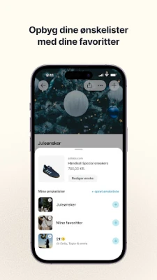 At tilføje et ønske er designet til at være intuitivt og effektivt. Finder du noget online, kan du enten bruge den smarte "ønskeknap" i din delingsmenu for øjeblikkelig gemning, eller du kan kopiere linket, indsætte det i appen, og Ønskeskyen automatiserer resten. Ser du noget i en butik? Tag blot et billede og tilføj ønsket manuelt. Vi anbefaler de automatiske metoder for at gøre det nemmest for dine gæster at finde og købe præcis det, du ønsker. Opret ubegrænset antal lister – til dig selv, til fællesprojekter med din partner, eller som gaveidéer til andre familiemedlemmer. Få inspiration fra venners lister, og udforsk de nyeste trends fra populære brands. Med Ønskeskyen er du altid ét skridt foran, når det kommer til gaveønsker og -glæde.