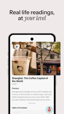 Med Read Bean mestrer du kinesisk gennem autentisk indhold fra den virkelige verden. Læs, lyt og tænk på ægte kinesisk, uanset om du er HSK 1 eller 6. Få personaliserede lektioner, der skærper din sprogfærdighed til erhverv, kultur og hverdagssamtaler.